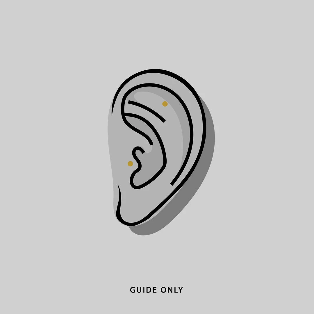 Can be worn in a tragus or flat piercing. See illustration for suitable piercing locations.