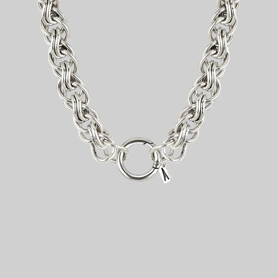 Chunky Silver wheat collar chain with circle clasp. Wear it solo or add more layers for the ultimate style statement.