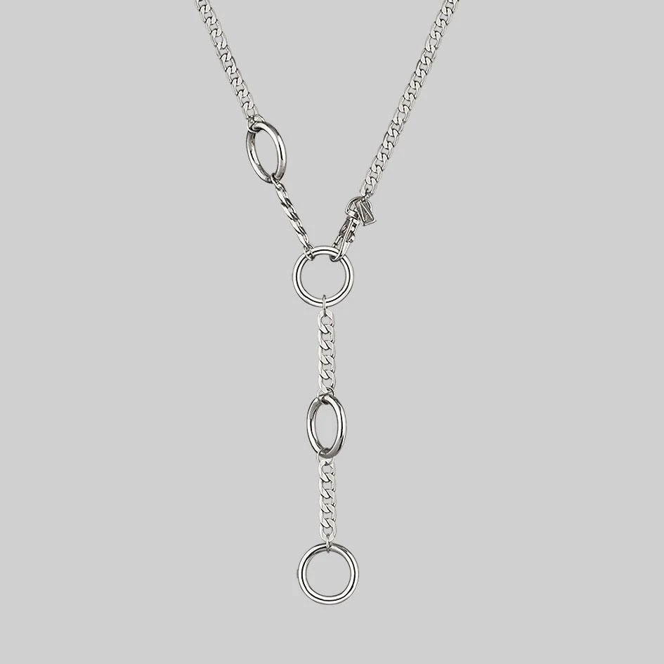 Y-shape chunky curb chain necklace. Featuring a vintage watch chain clasp. Can be worn at multiple lengths – perfect for layering.