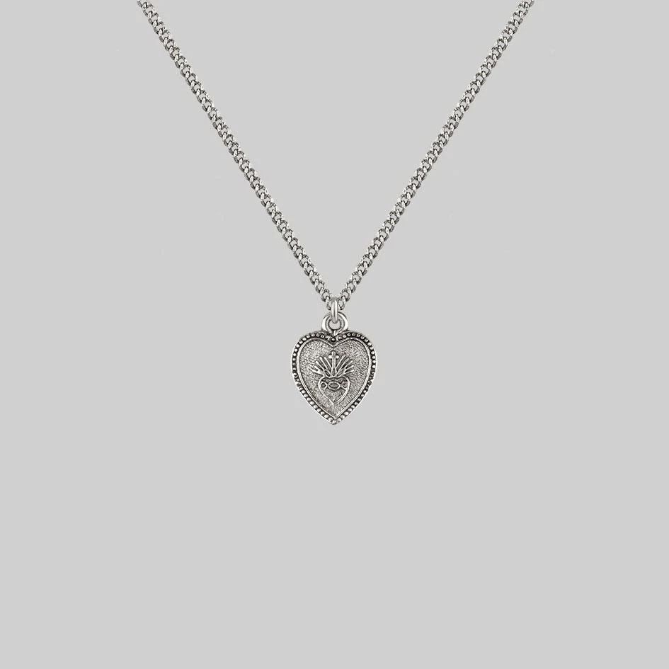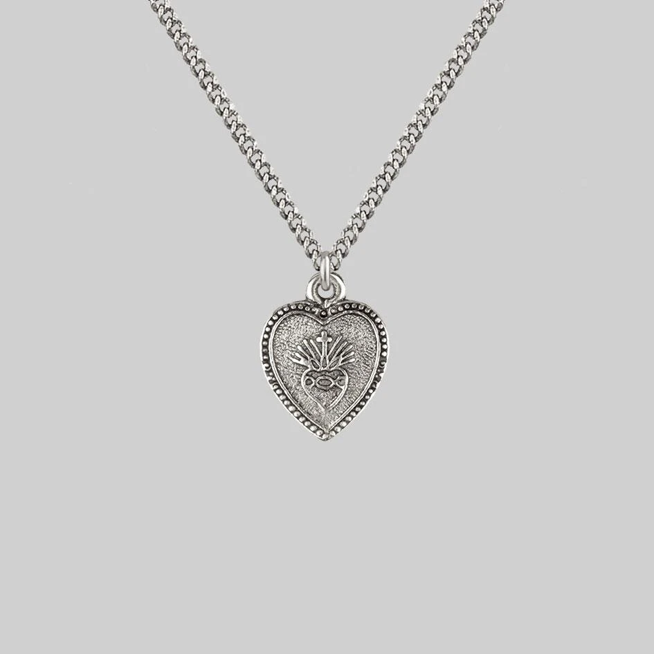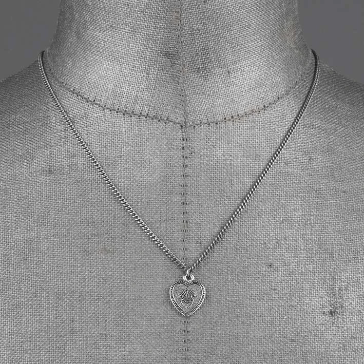 Silver Sacred heart charm necklace.