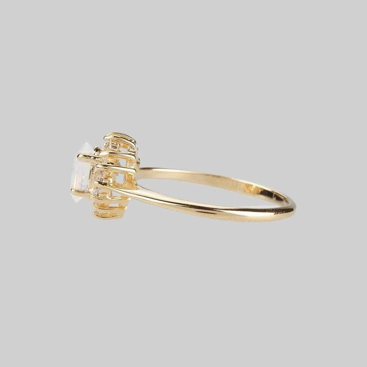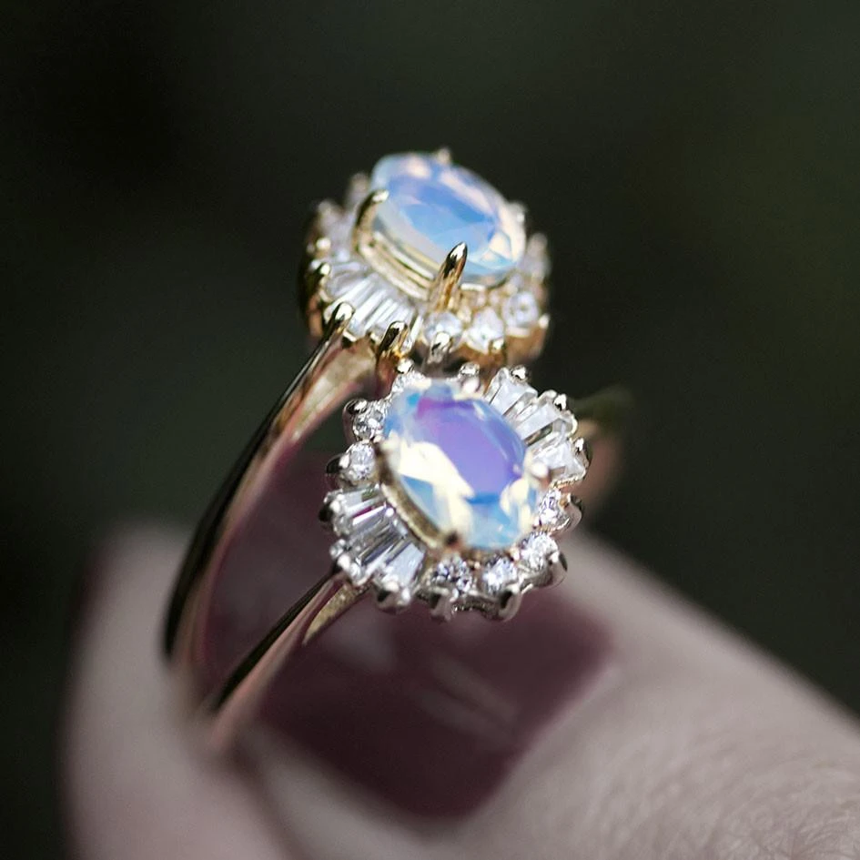 Vintage style Cluster ring featuring a glowing cut Opal surrounded by sparkling Cubic Zirconia crystal wings.