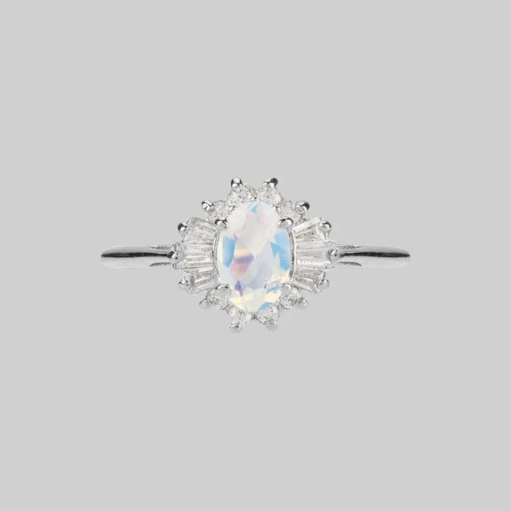 Vintage style Cluster ring featuring a glowing cut Opal surrounded by sparkling Cubic Zirconia crystal wings.