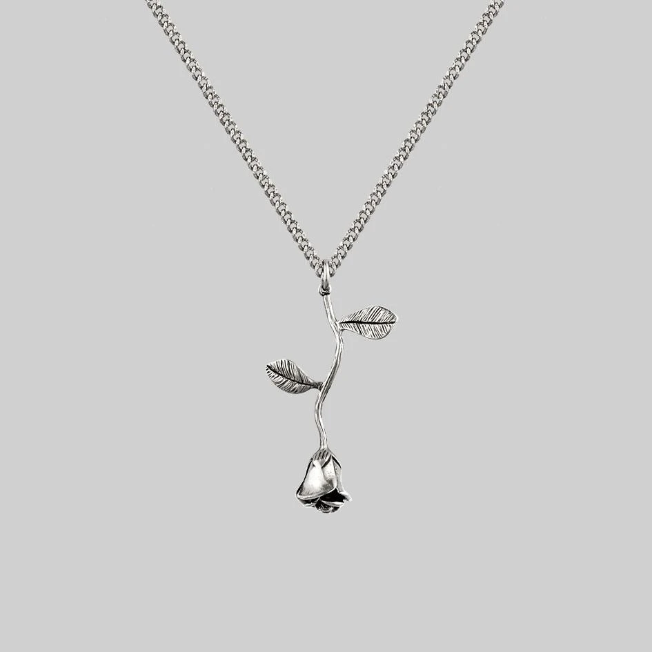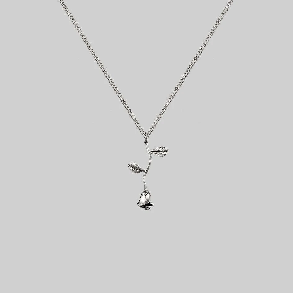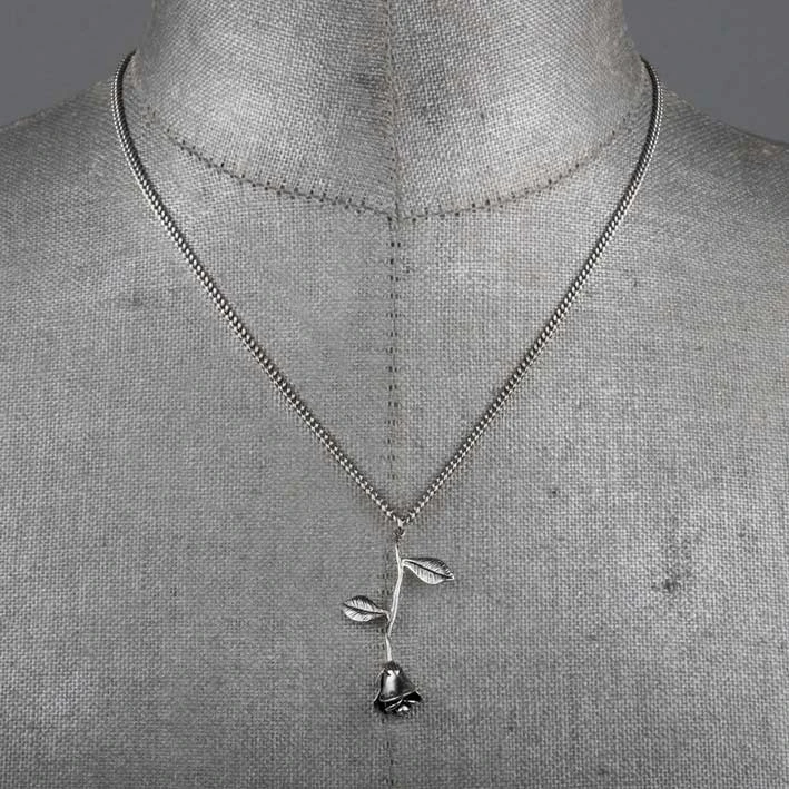 Delicate silver rose stem charm necklace.