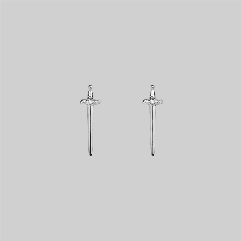 Deathly dagger earrings featuring tiny Cubic Zirconia crystal centers.