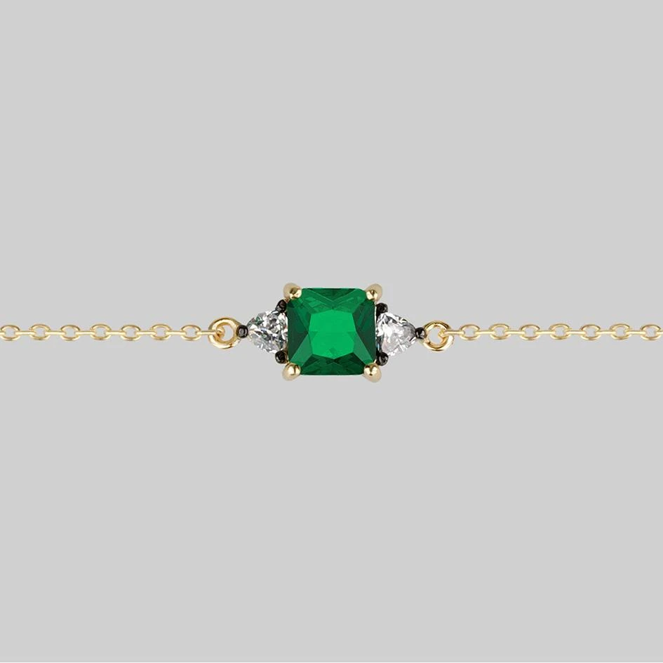 18k Gold Plated Sterling Silver. Green Quartz. Cubic Zirconia.