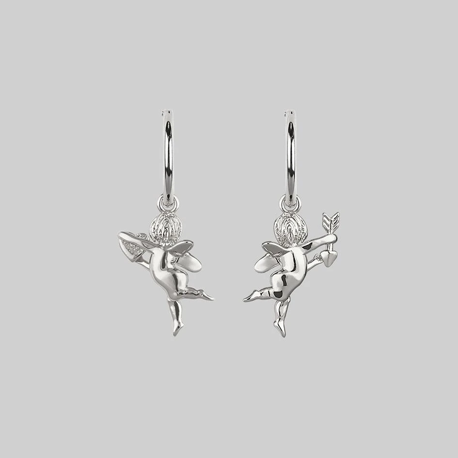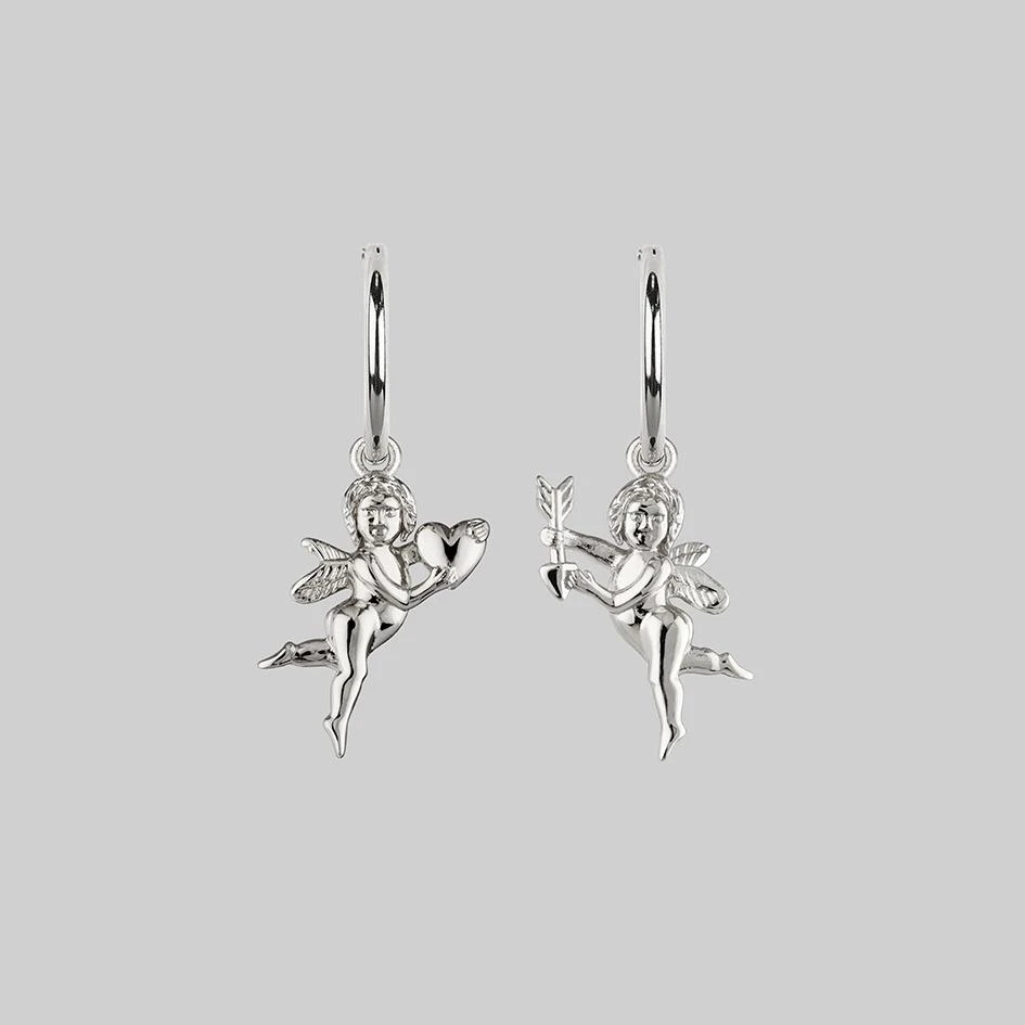 Mismatch Cherub earrings, inspired by the mythological tale of lovers Cupid and Psyche.