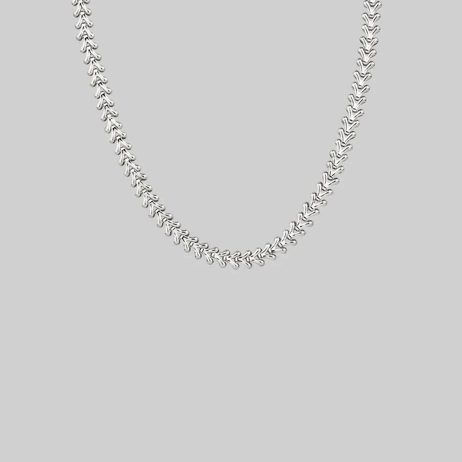 Retro inspired lightweight v-link collar necklace. A subtle necklace with big impact, designed to sit elegantly above your collar bones.