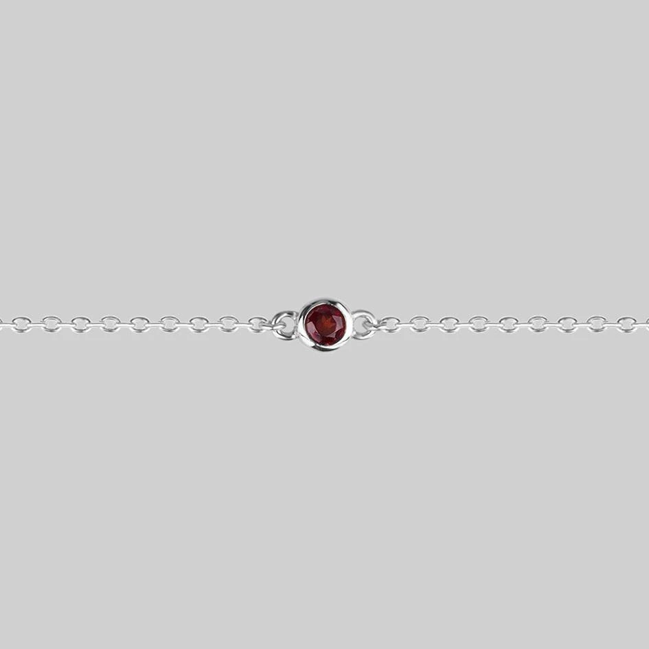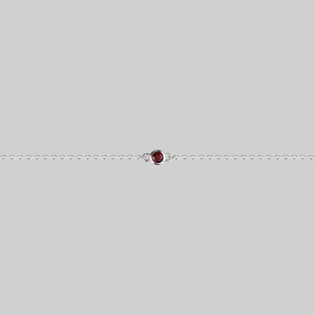 Sterling Silver simple dainty chain choker featuring a bezel set Garnet gemstone.