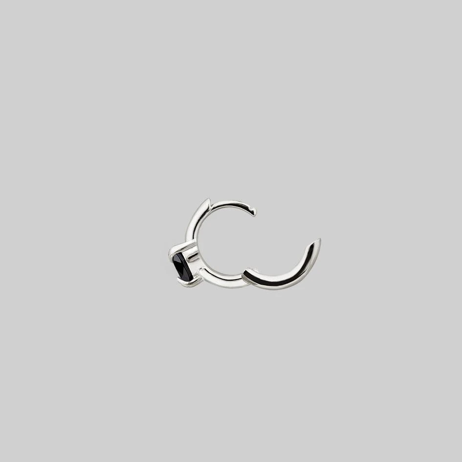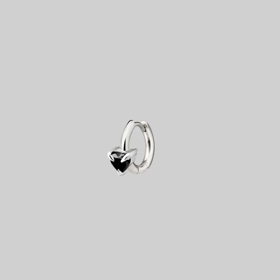 Silver clicker, cartilage hoop earring featuring a Black Spinel gemstone heart set within claw shaped prongs.