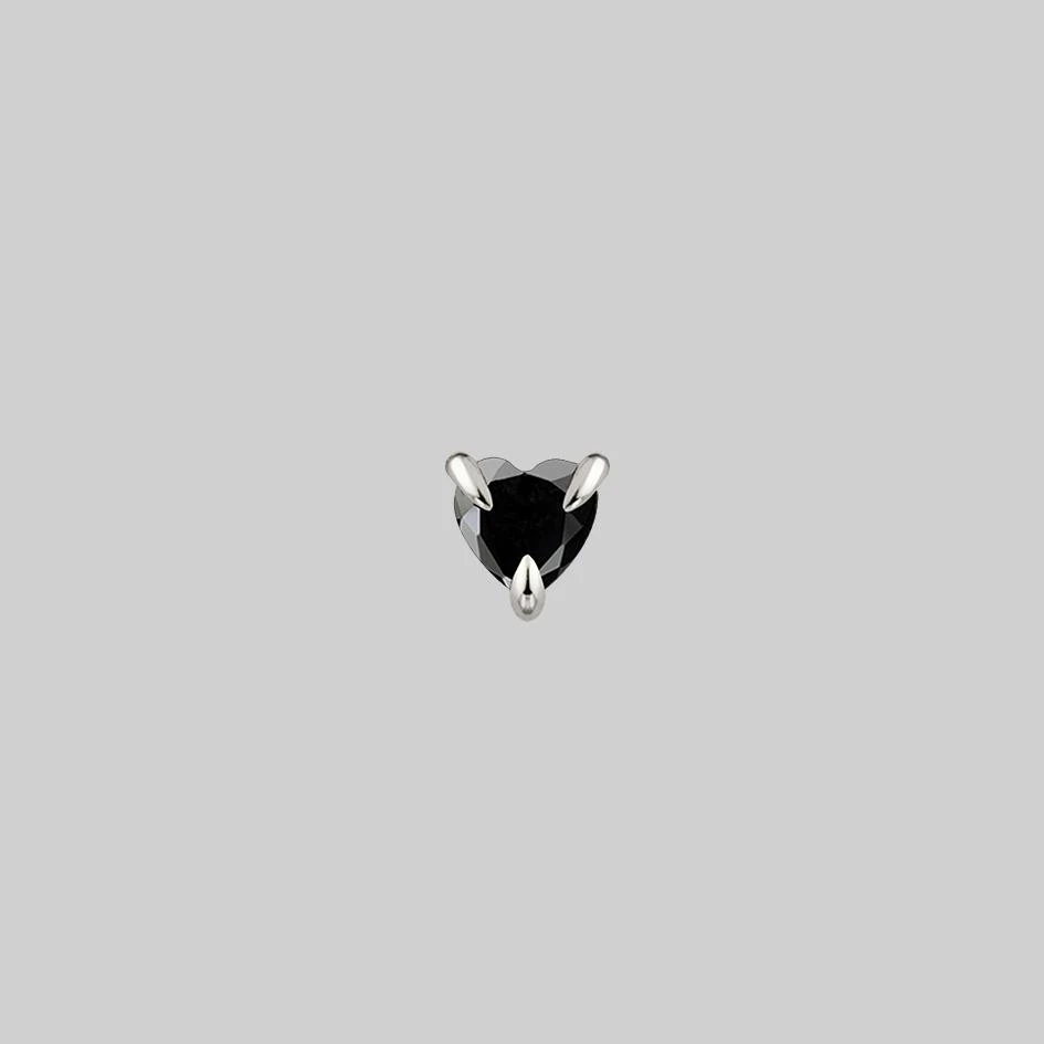 Cartilage stud earring featuring a Black Spinel heart set within claw shaped prongs.