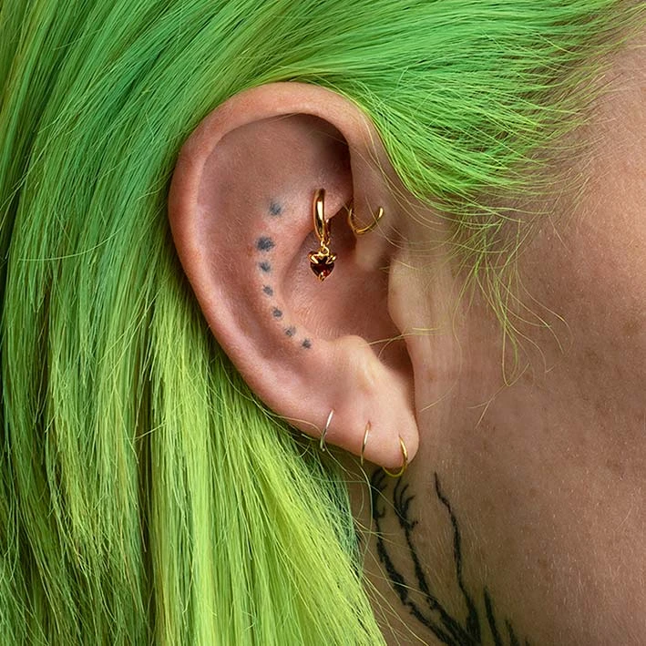 Everyone’s piercing location and ear shape are different! Ensure the internal diameter of the hoop will fit your desired piercing/position. Ask someone to help you measure the space of your desired location with a ruler. Jewellery for piercings is non exchangeable or returnable.