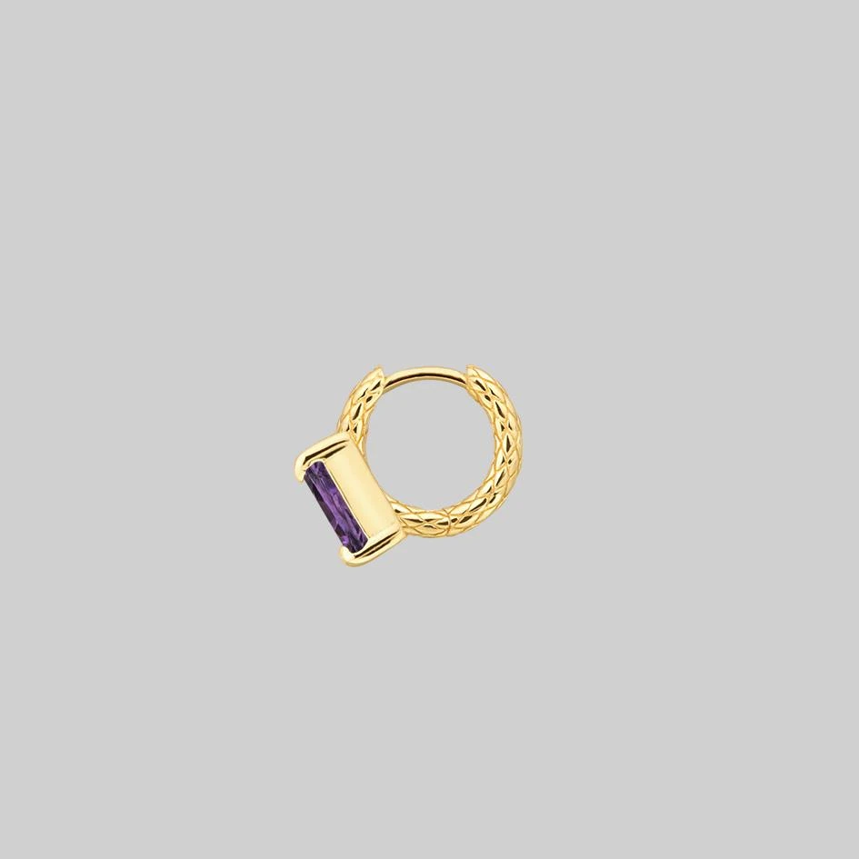 Gold clicker, cartilage hoop earring featuring snake skin texture and a stunning natural Amethyst gemstone.