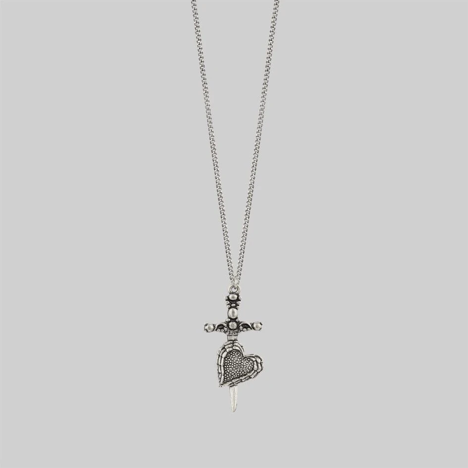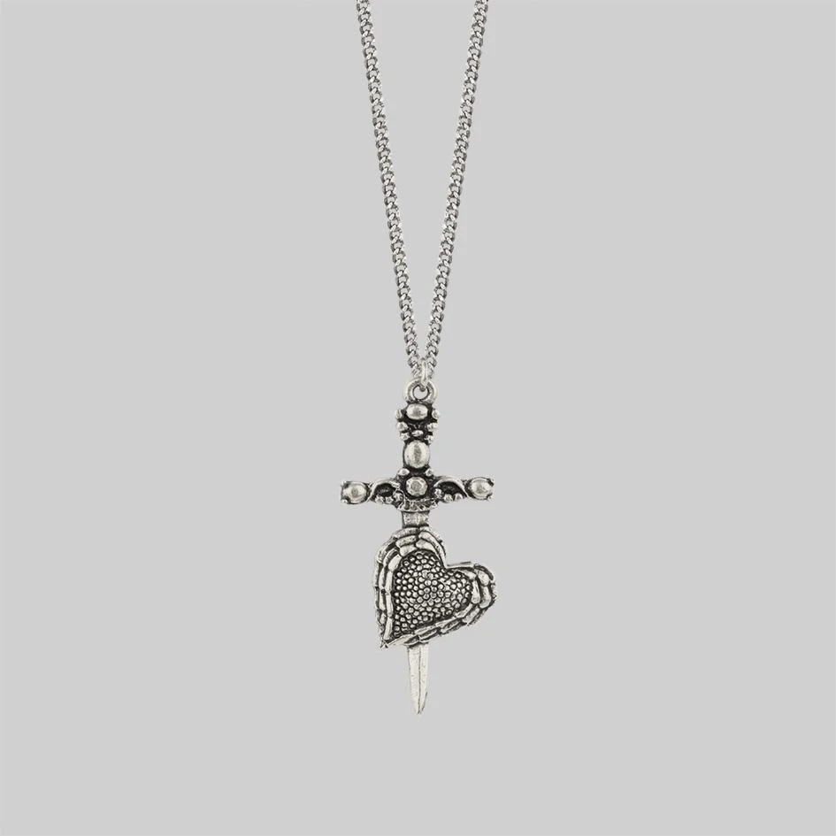 Fierce dagger piercing heart layering necklace.