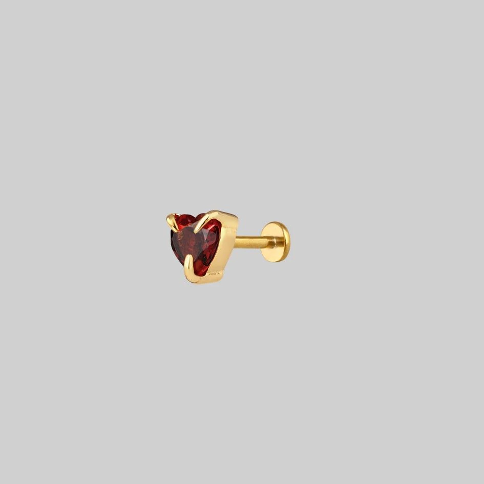 Cartilage stud earring featuring a Garnet heart set within claw shaped prongs.