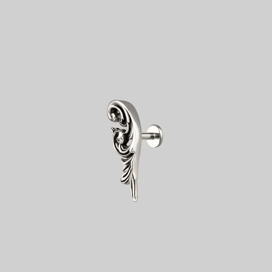 Ornate baroque detail threaded stud earring for helix cartilage piercings.