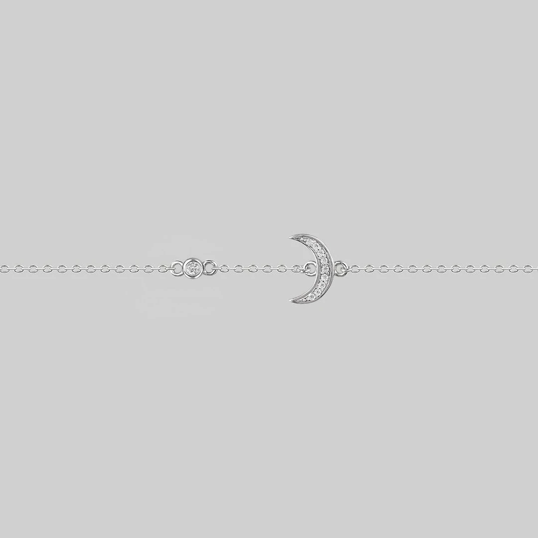 Sterling Silver dainty chain choker with crystal encrusted moon crescent & sparkling star.