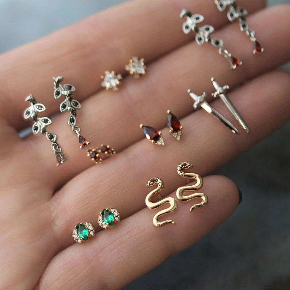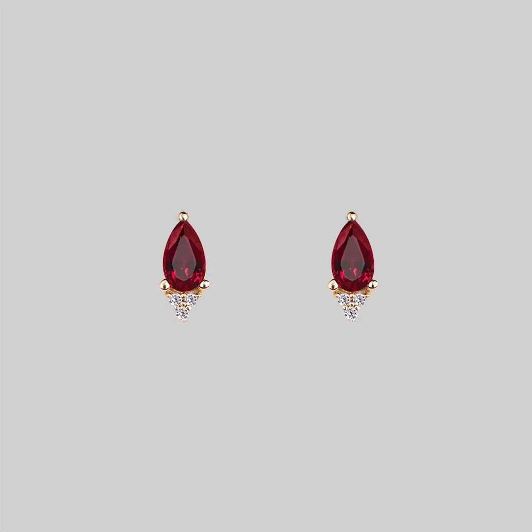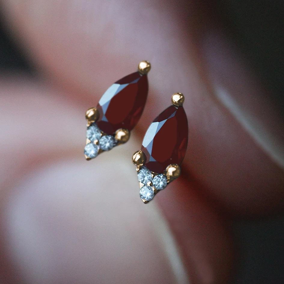 Pear cut Garnet gemstone with sparkling Cubic Zirconia ear studs.