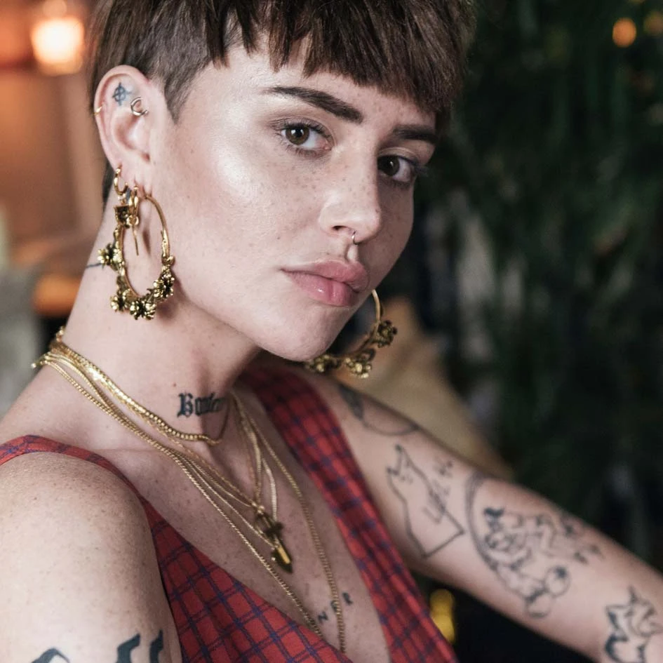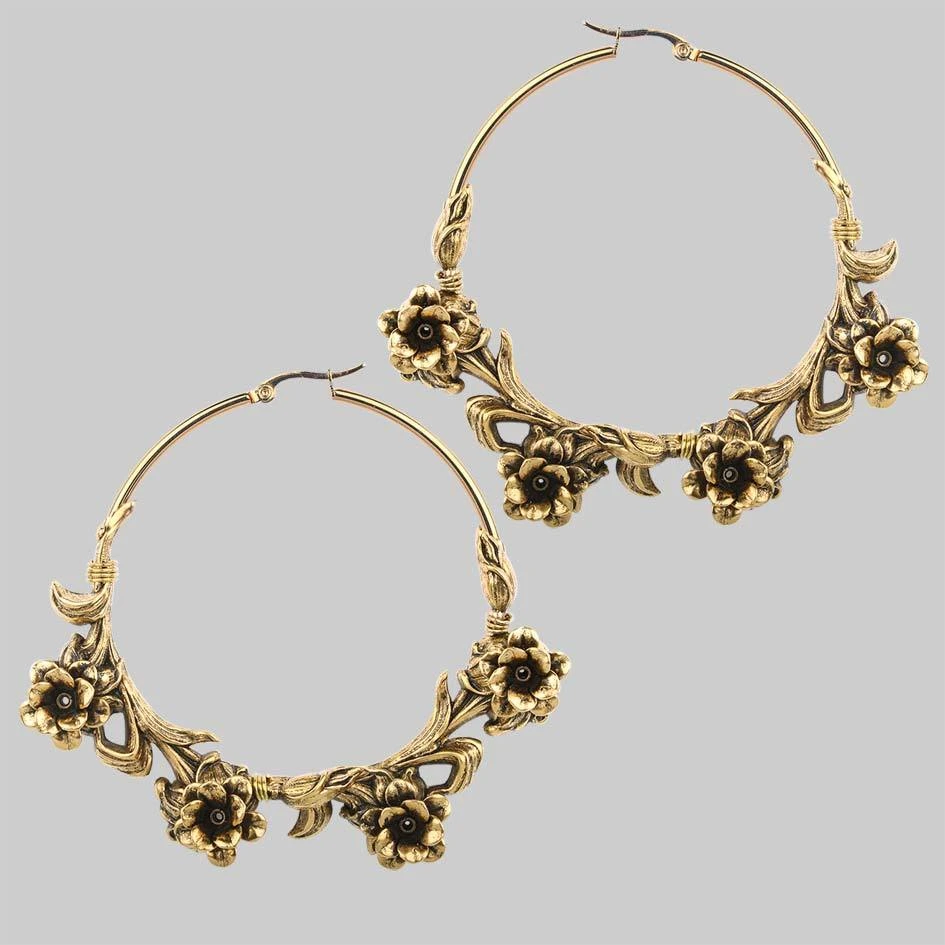 Huge Lux hoop statement earrings featuring 3D wild rose detail.
