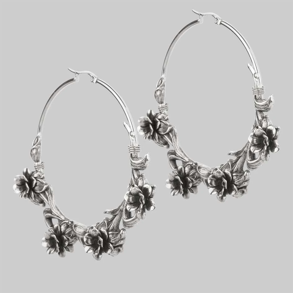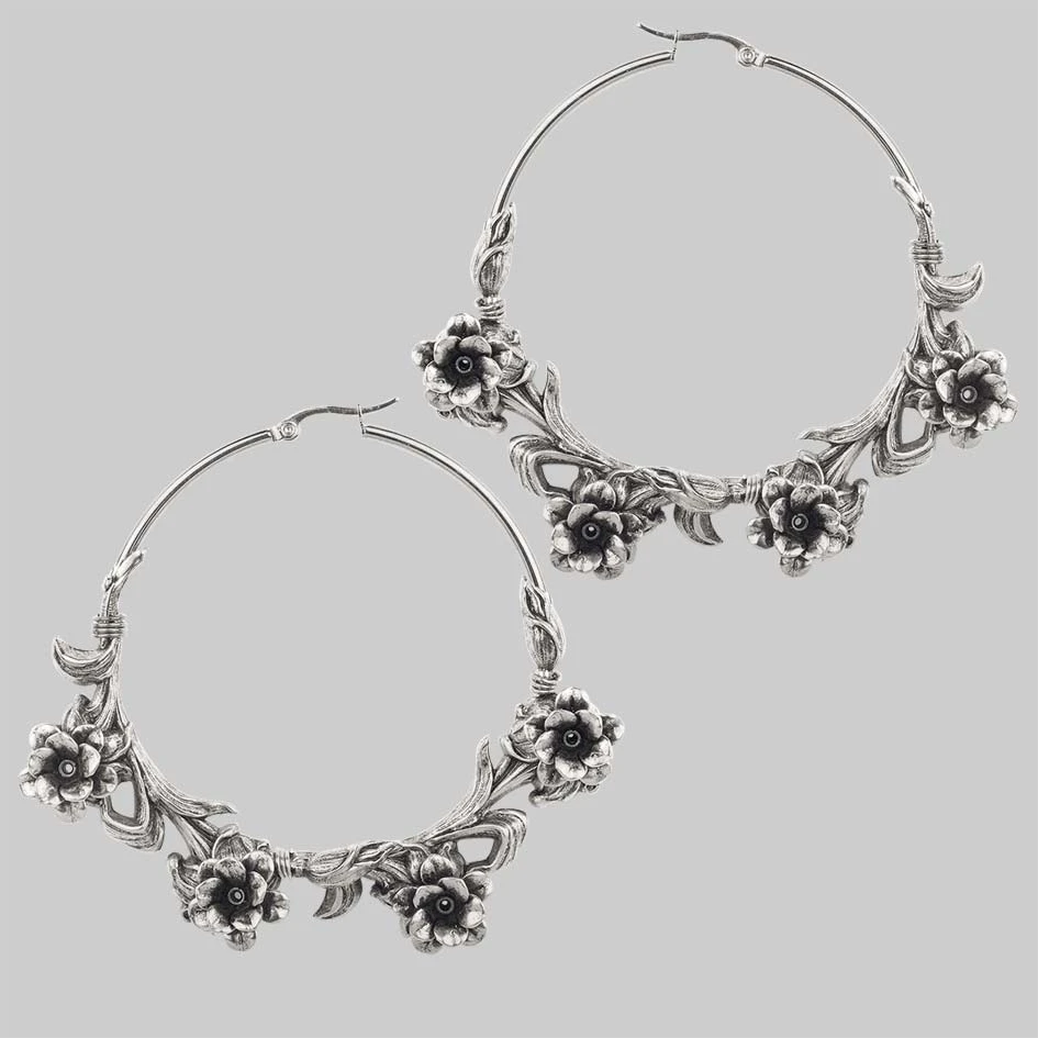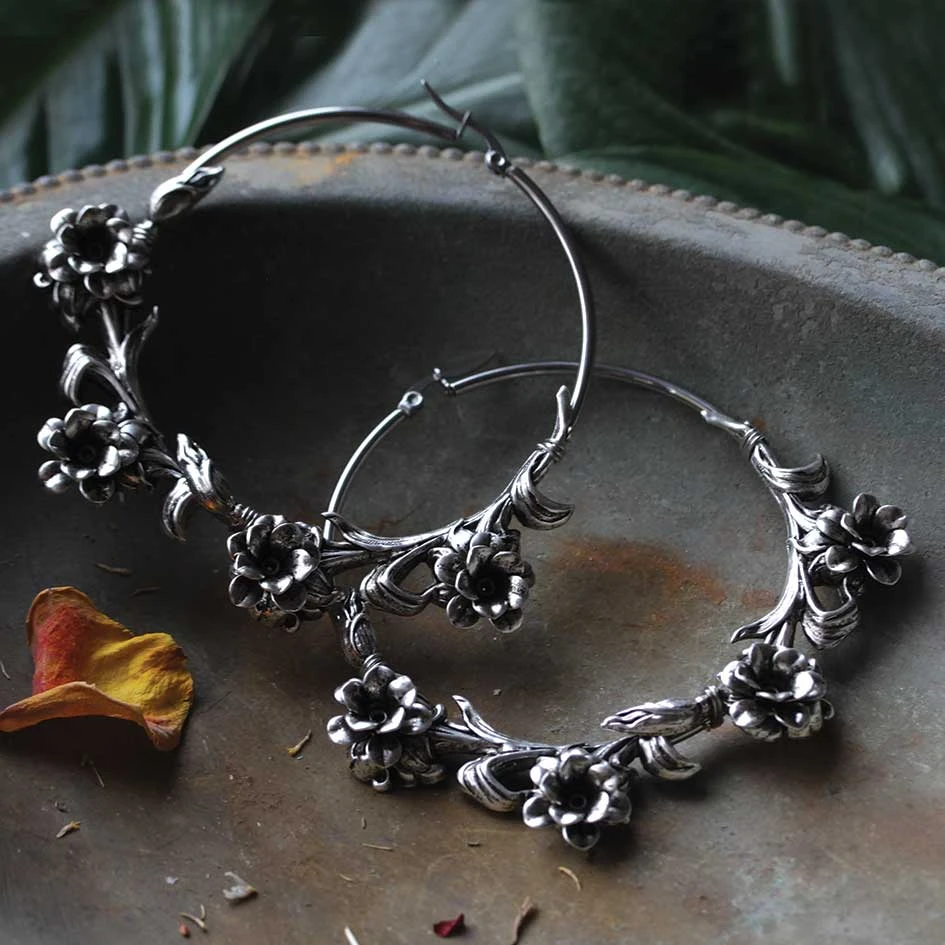 Huge Lux hoop statement earrings featuring 3D wild rose detail.
