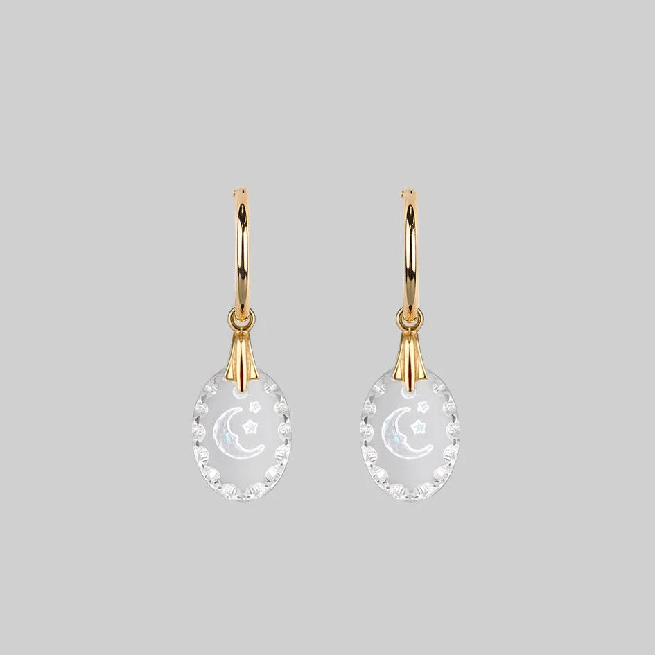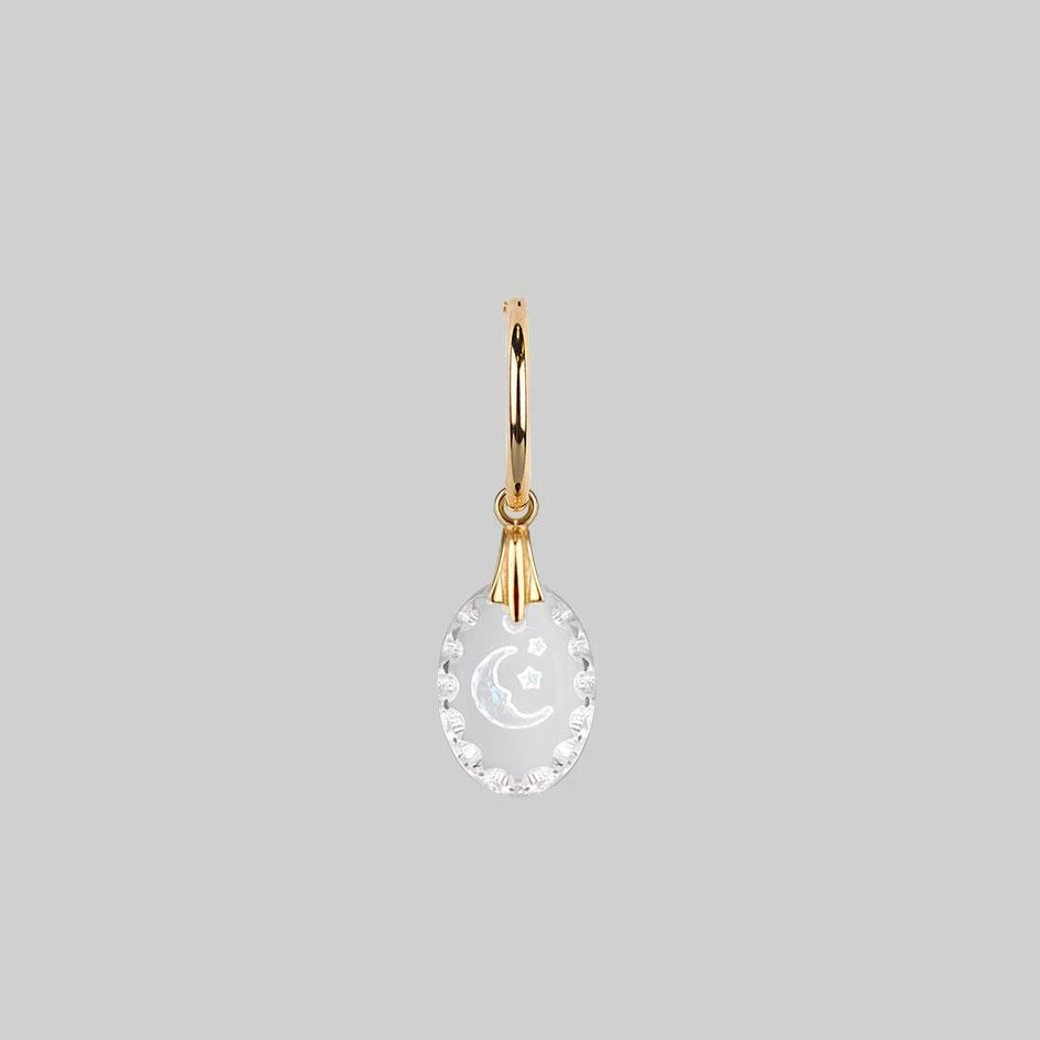 Vintage inspired scalloped edge glass Intaglio, with intricately engraved moon & star motif.