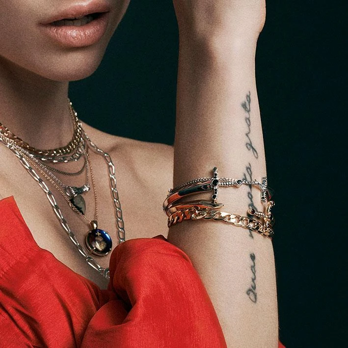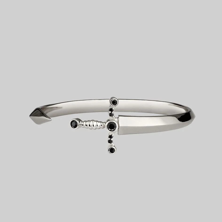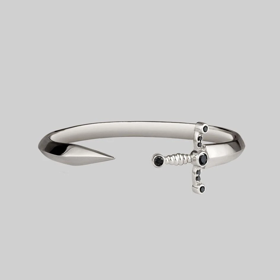 Fierce wrap-around dagger bangle, encrusted with natural Black Spinel gemstones.