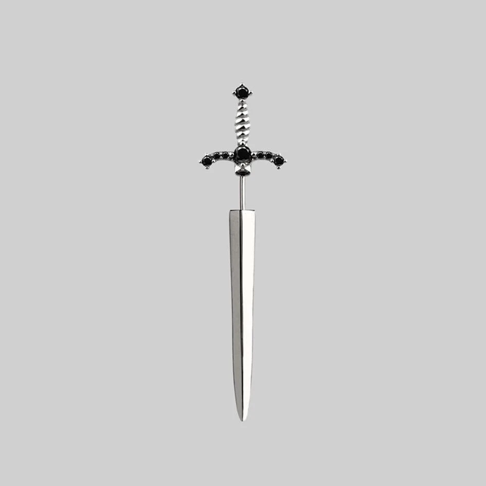 Regal dagger illusion earring encrusted with Black Spinel gemstone. For standard piercings.