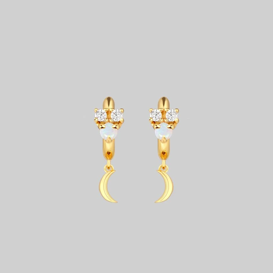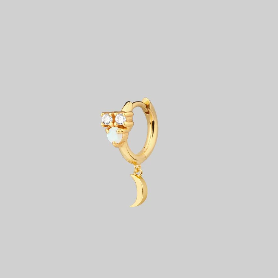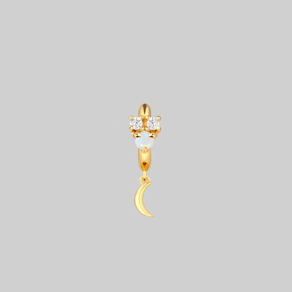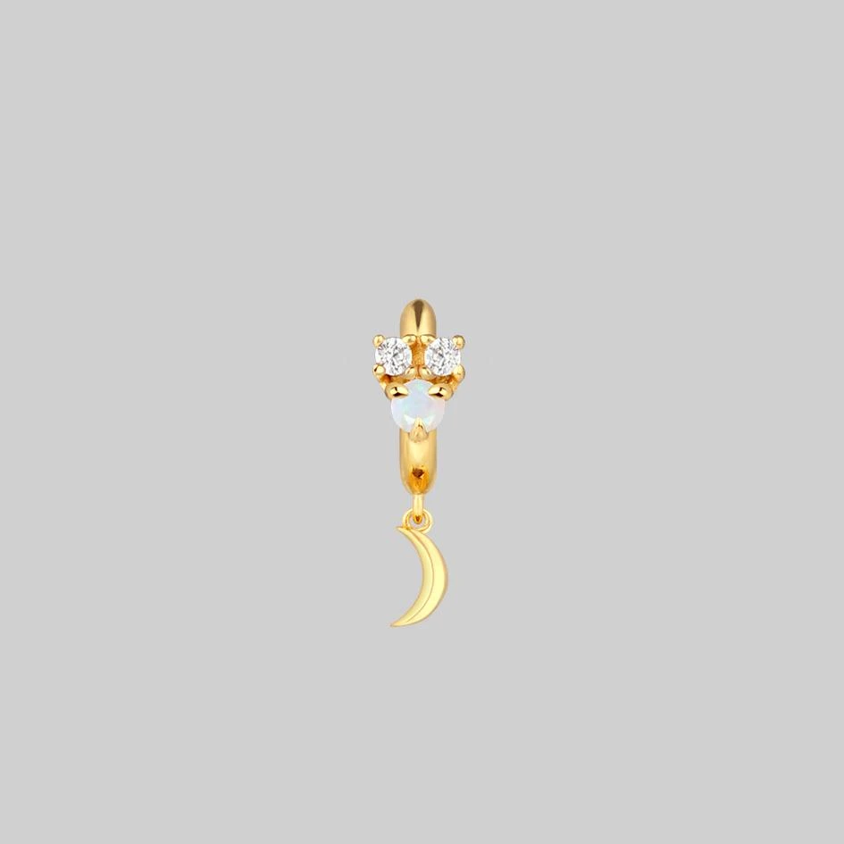 Celestial cluster clicker hoop earrings featuring an Iridescent central Opal gemstone and Cubic Zirconia stars.
