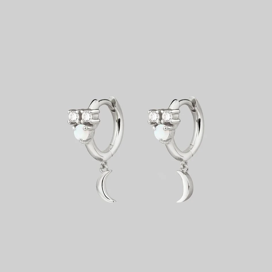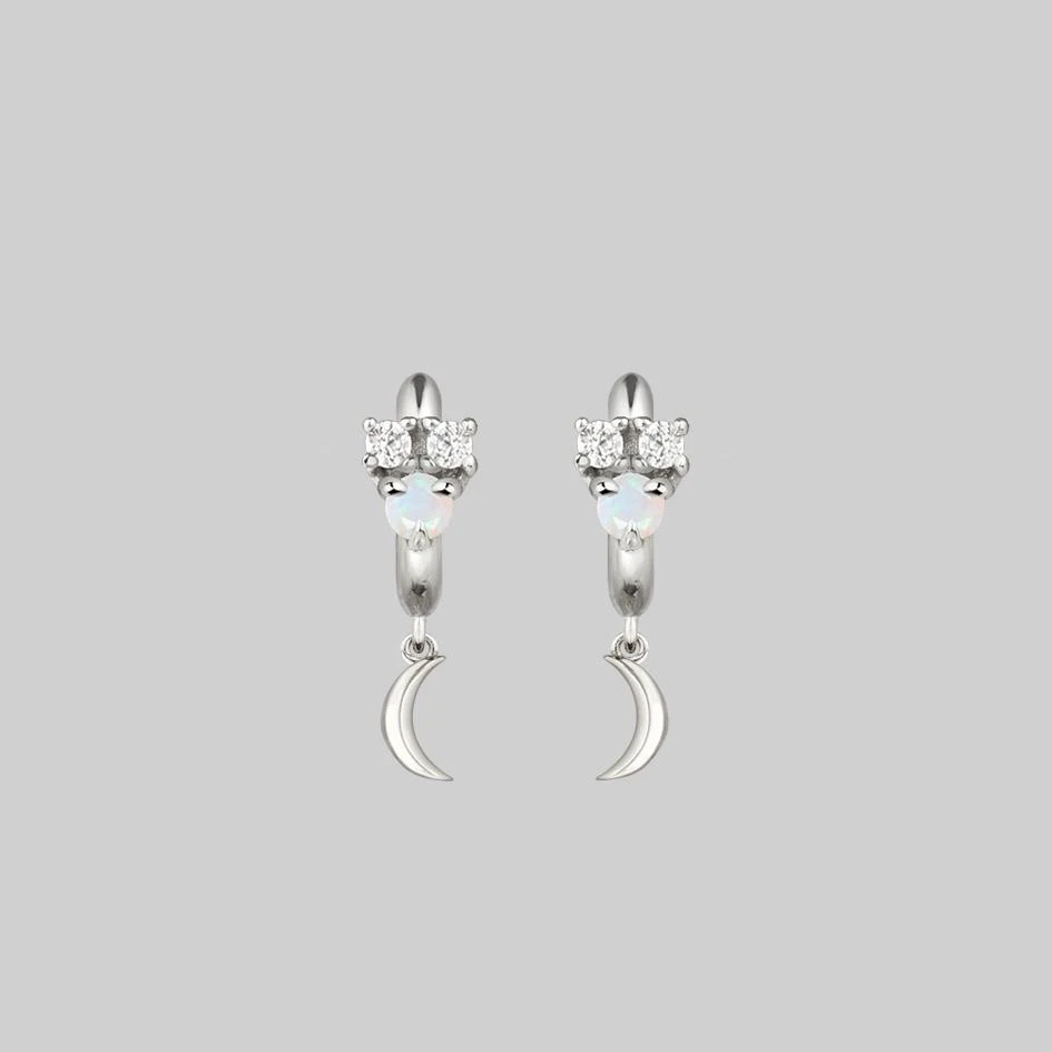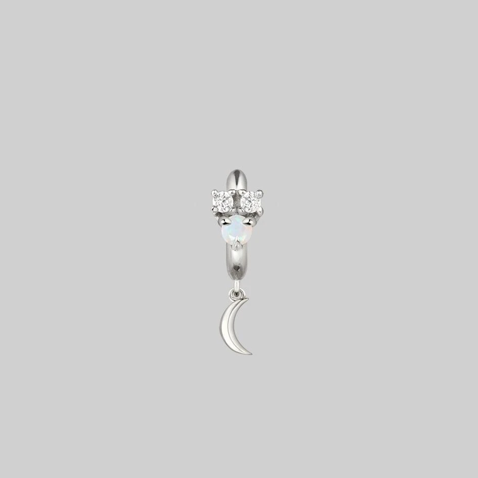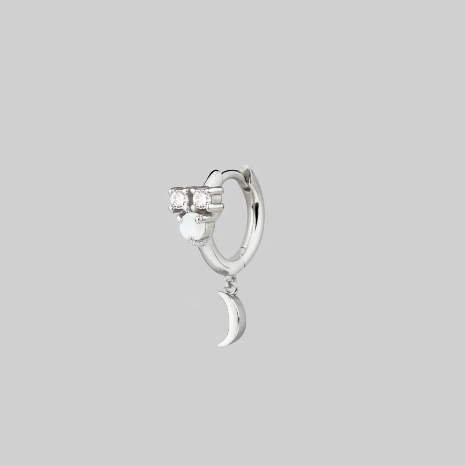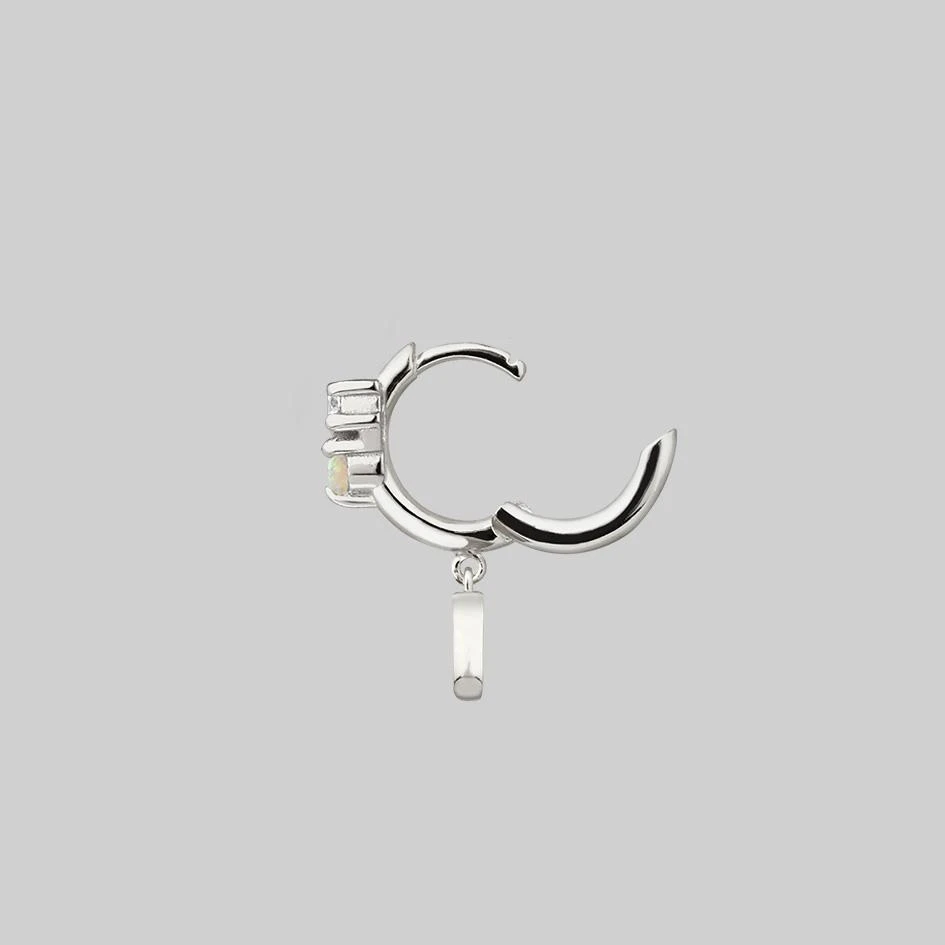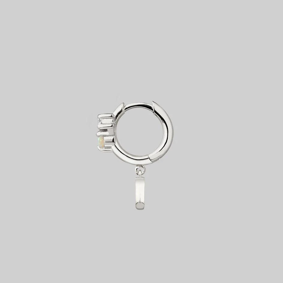 Celestial cluster clicker hoop earrings featuring an Iridescent central Opal gemstone and Cubic Zirconia stars.