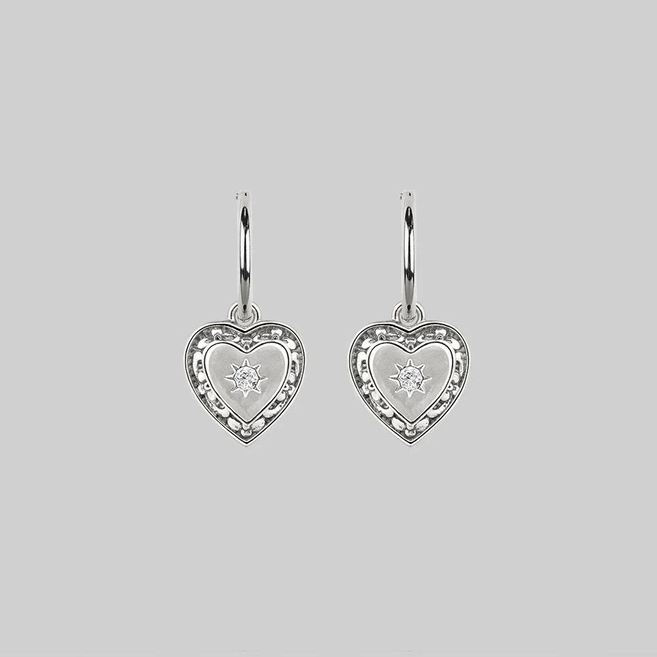 Romantic hearts featuring a starburst set tiny Cubic Zirconia crystal centre.