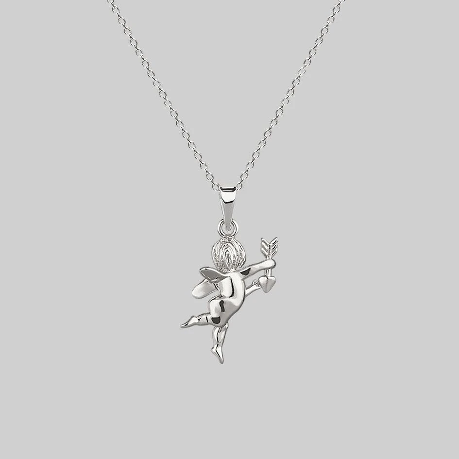 Mismatch cherub necklaces, inspired by the mythological tale of lovers Cupid and Psyche.