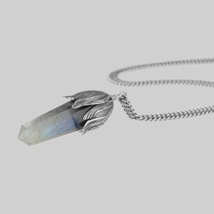 Mystical Large Labradorite gemstone encased within a wild petal flourish.