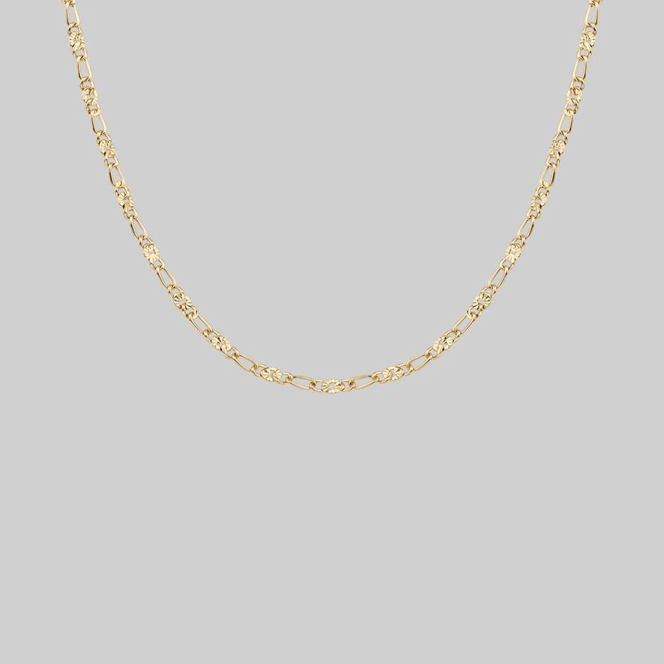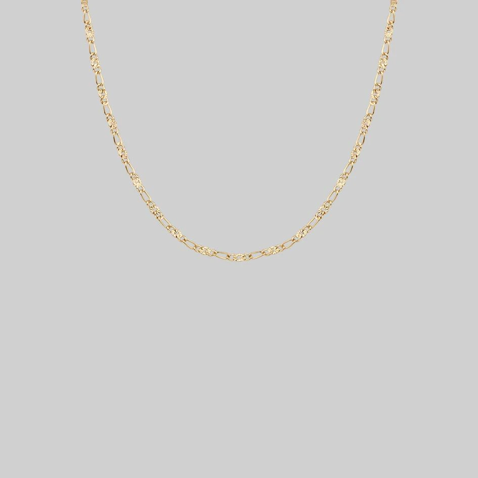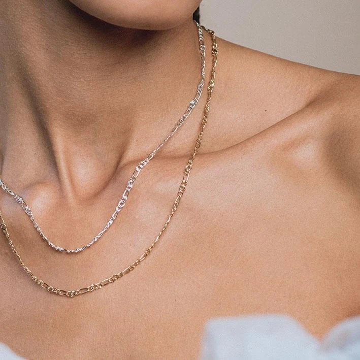 Add some texture and shine to your neck-mess with this essential Figaro chain with sunburst detail.