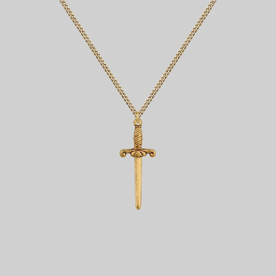 Dagger measures 38x15mm. Adjustable chain length 16 – 19.5 Inches