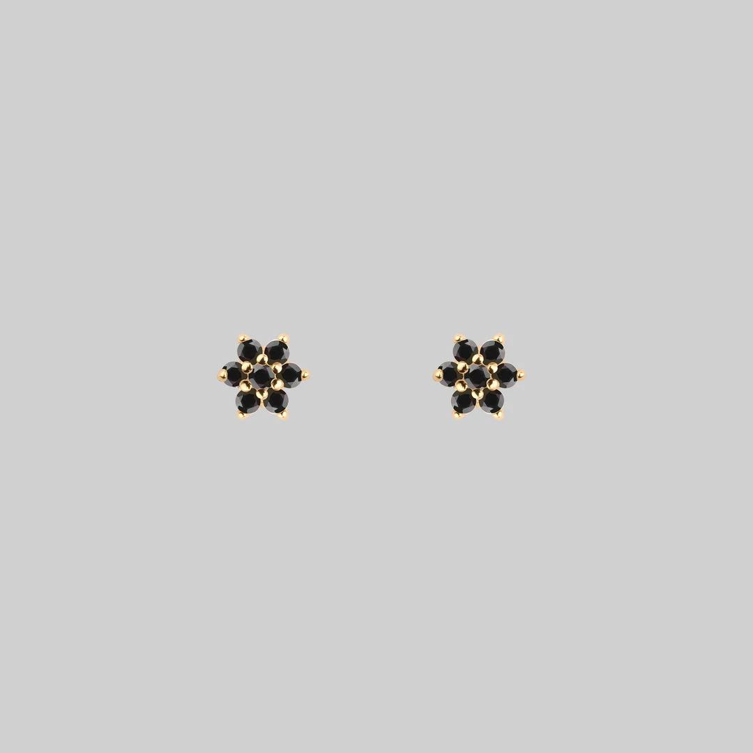 Tiny star stud earrings with Onyx gemstones.