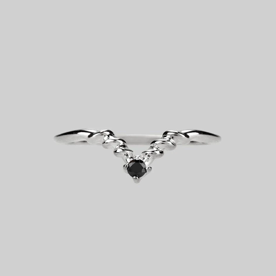 Vintage style chevron ring featuring a tiny Black Spinel Gemstone. A comfortable classic.