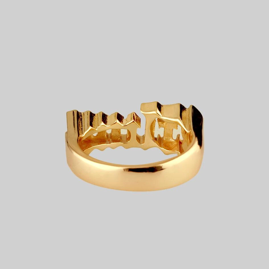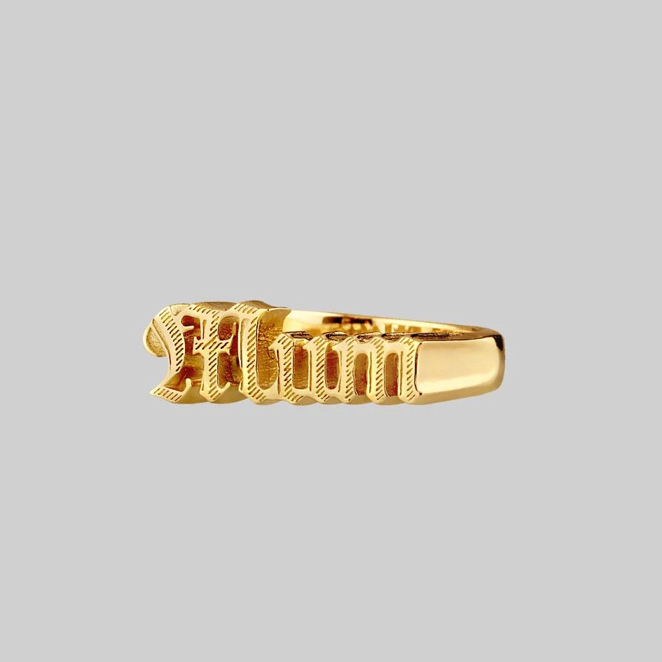 Old English gothic lettering Mum ring. Chunky, detailed letters for an authentic vintage style. Not just for Mums; wear in honour of your Mum too.