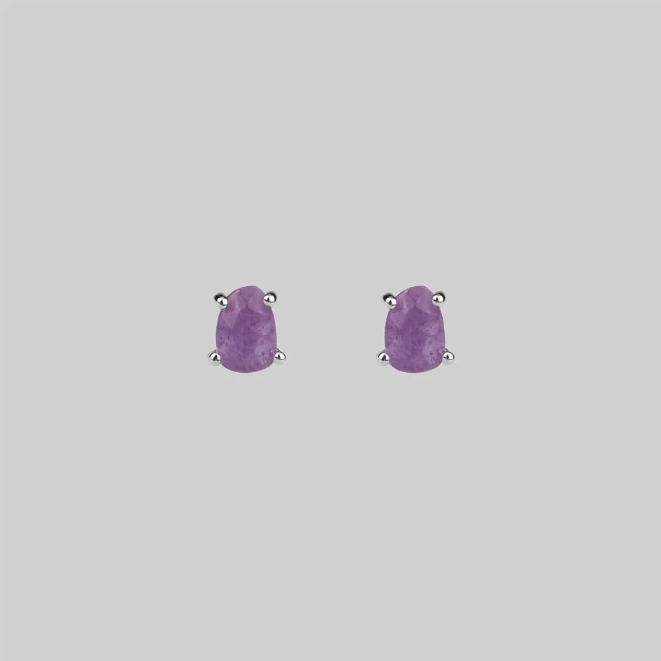 Simple earrings featuring claw set faceted pieces of Amethyst gemstone.