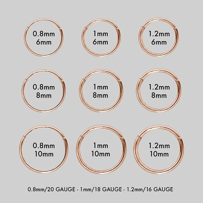 Everyone’s piercing location and ear shape are different! Ensure the internal diameter of the ring will fit your desired piercing/position. Ask someone to help you measure the space of your desired location with a ruler. Jewellery for piercings is non exchangeable or returnable.