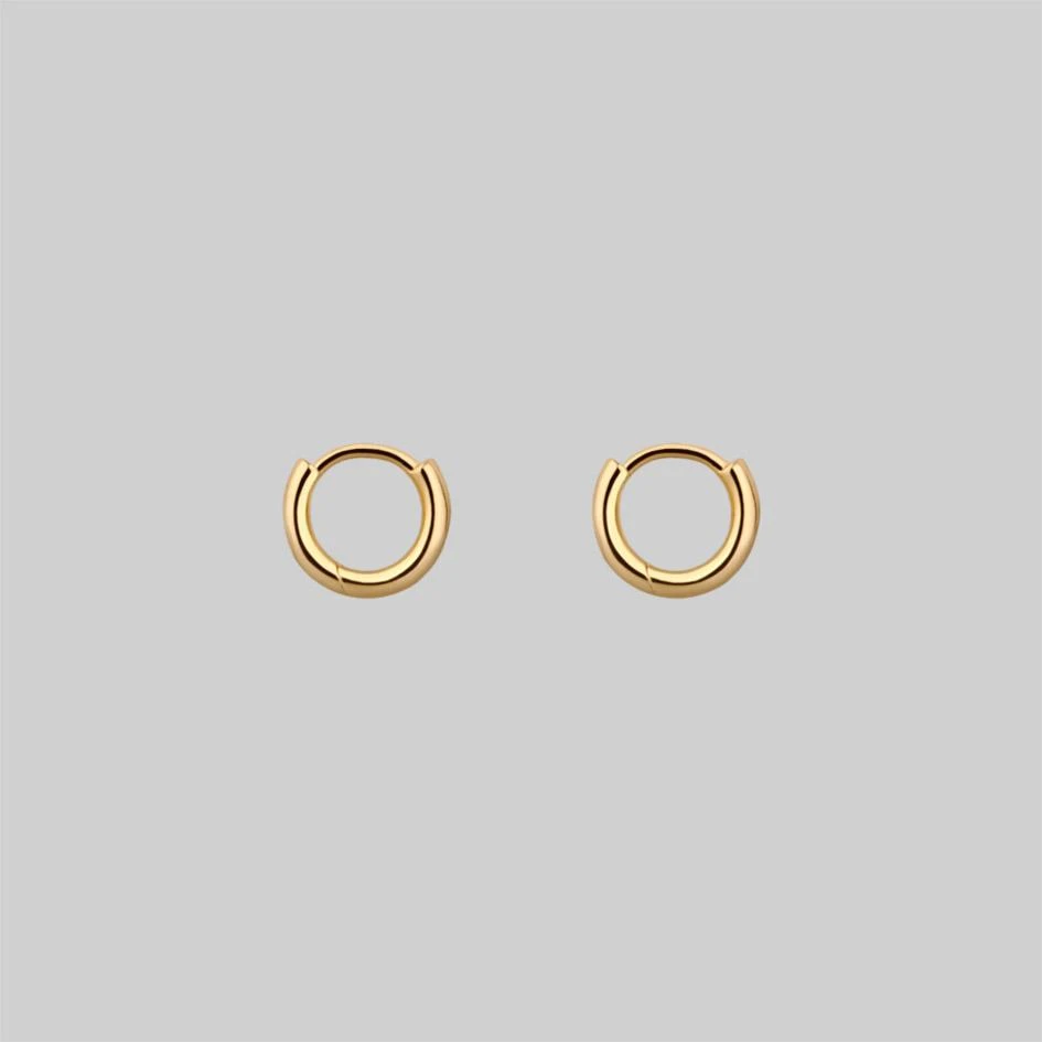 Simple 18K plated Sterling Silver clicker hoop earrings, for everyday wear. See second piercing in model shot.