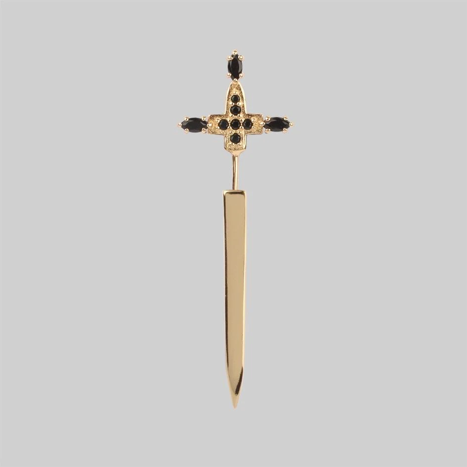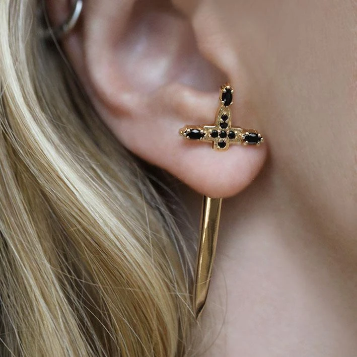 Fierce single dagger earring encrusted with tiny Black Spinel gemstones.