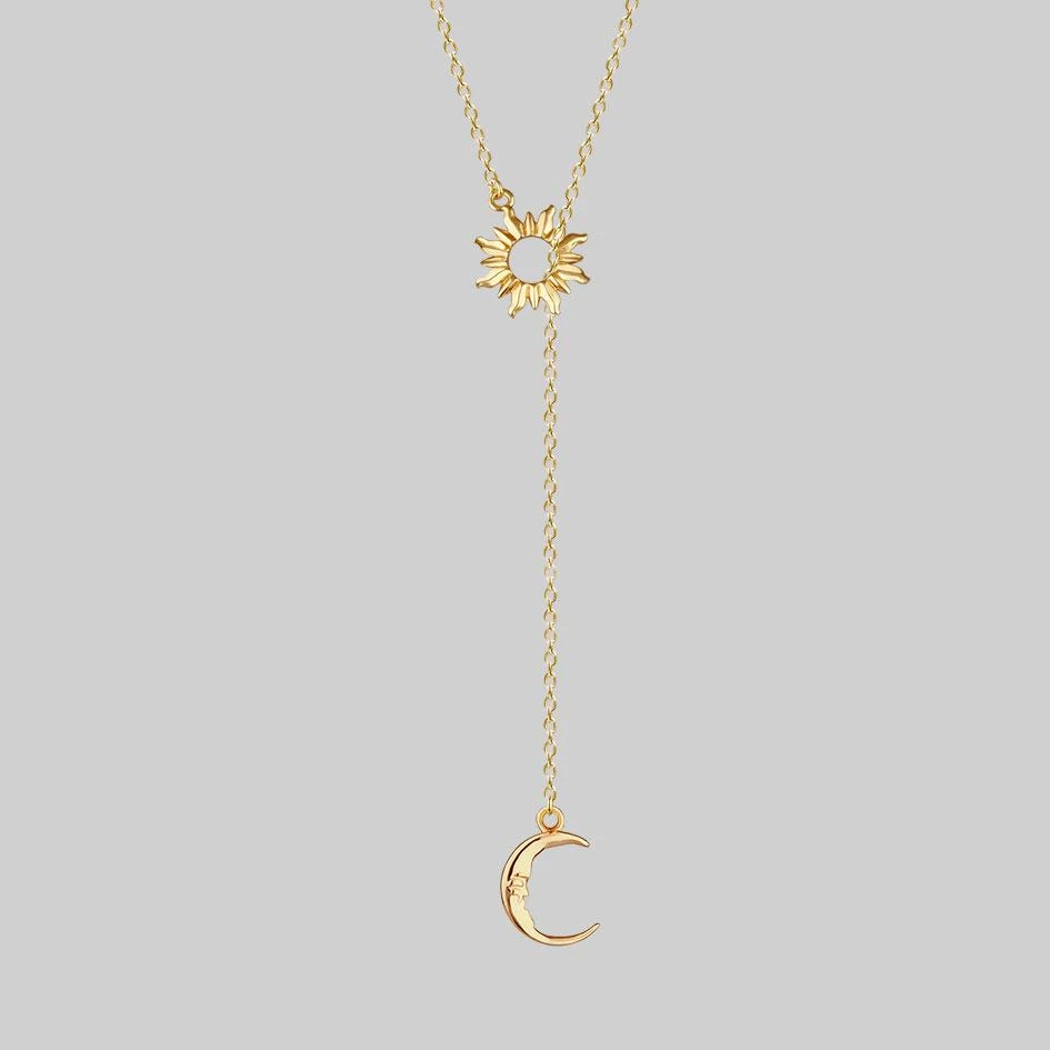 Simply thread the moon through the sun. Adjustable length; wear as a choker, or adjust length for a longer necklace. The variable length makes this necklace perfect for layering.