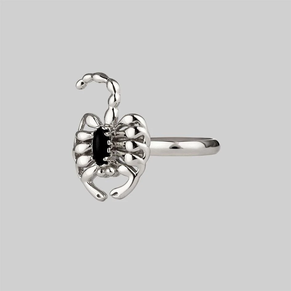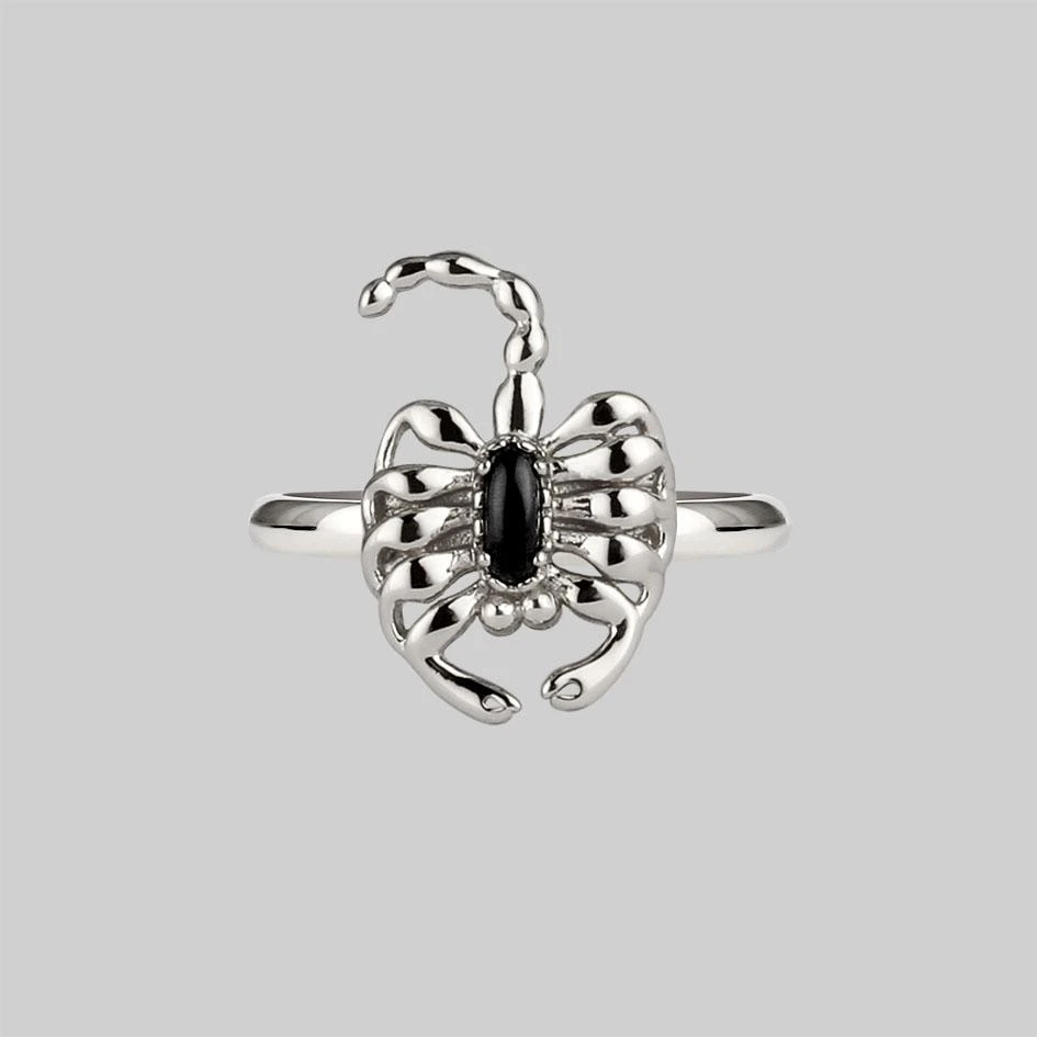Fierce silver Scorpion ring with Onyx gemstone centre.