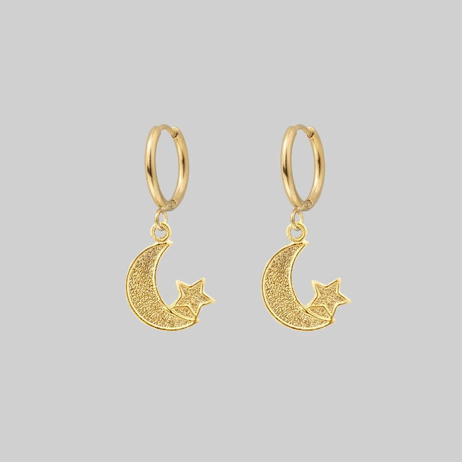Dangly moon and star charm earrings.