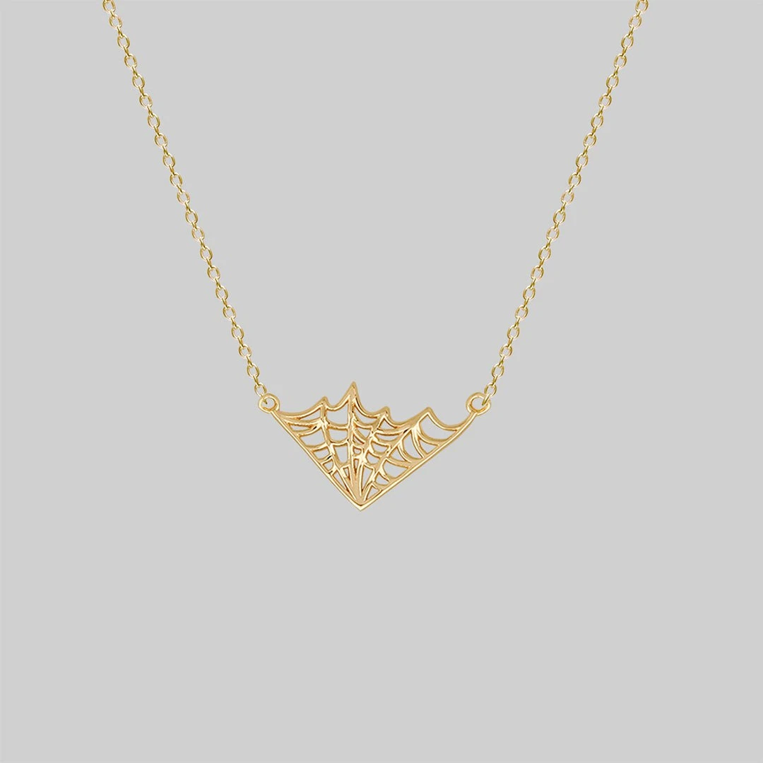 Dark and romantic gold web necklace. Designed to sit delicately between the collar bones.