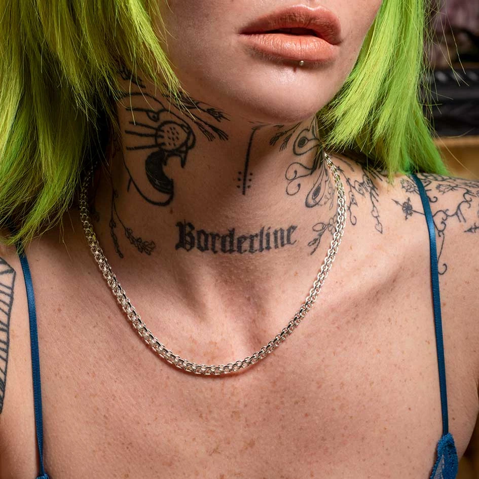 Silver chunky cross link chain necklace, perfect for layering.