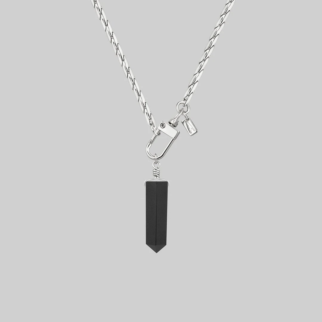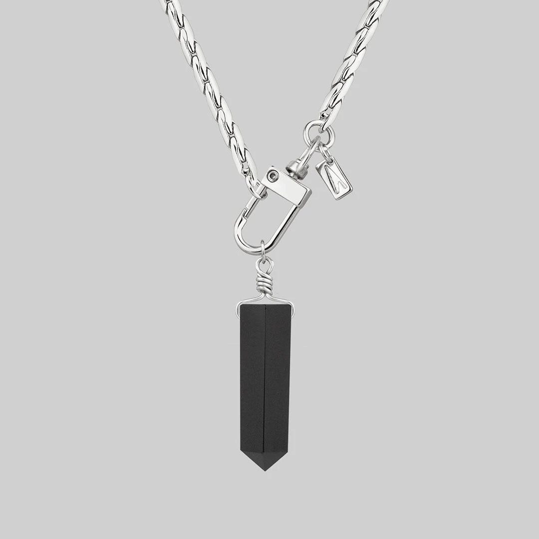 A large natural Black Agate gemstone hangs from a swivel fob clasp on a 90s style snake chain.