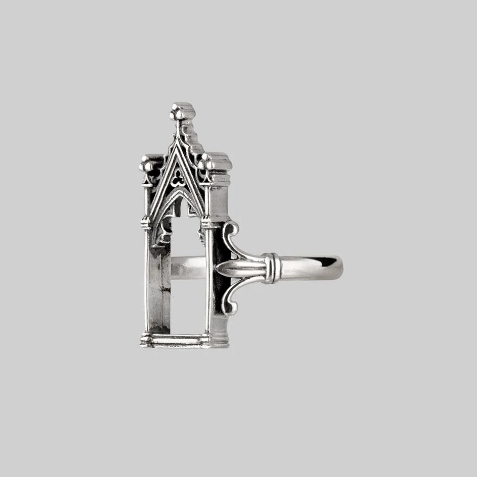 Silver open window Gothic frame ring.
