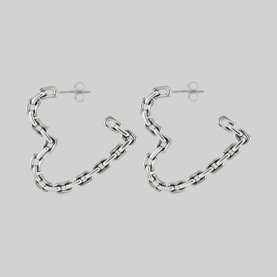 The links of love. Chain link heart hoops, a nostalgic nod to the 90s with a modern twist.