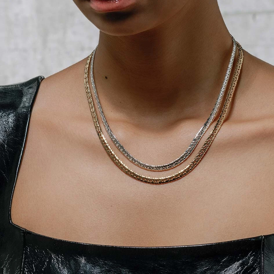 A layering staple, the chunky herringbone necklace is easily mixed and matched to curate the ideal neck stack.
