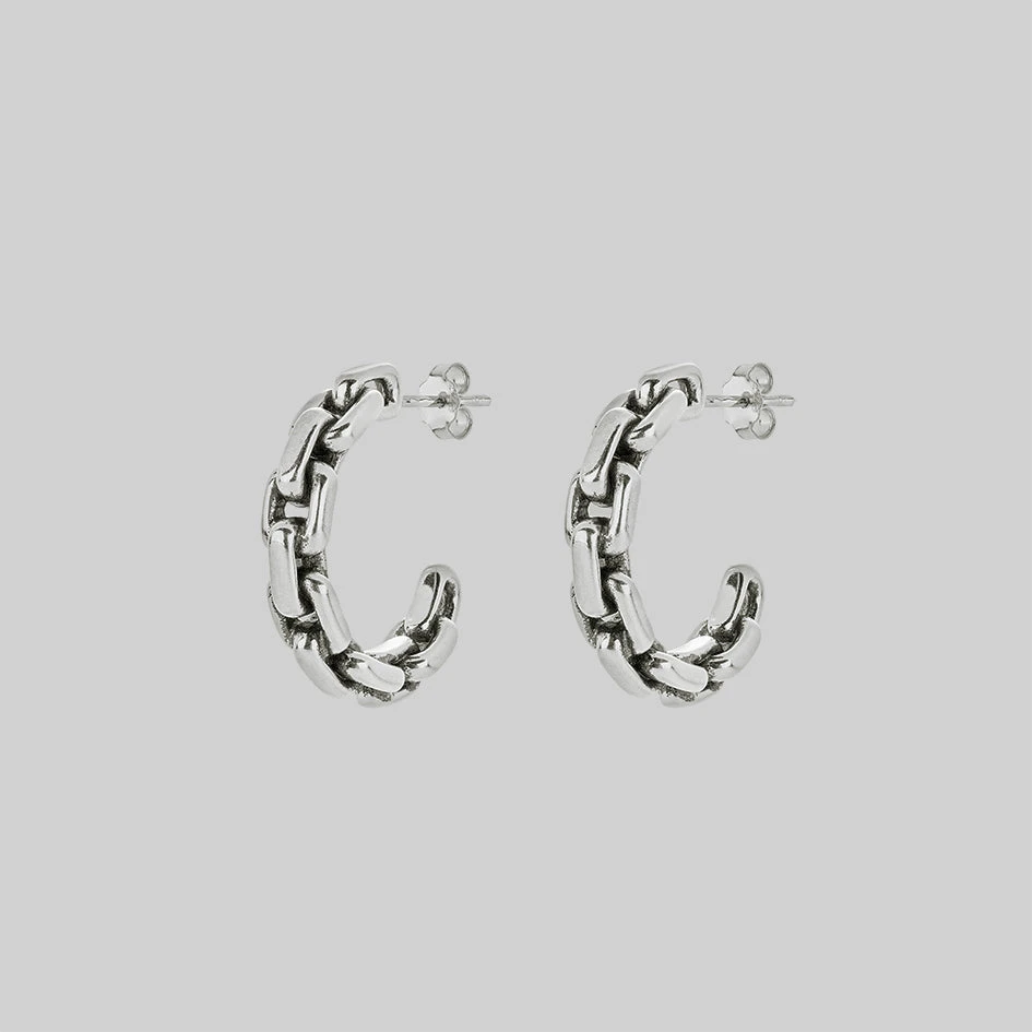 A nostalgic nod to the 90s. Stack the chunky chain hoop earrings with other hoops and studs for an undeniably chic look.